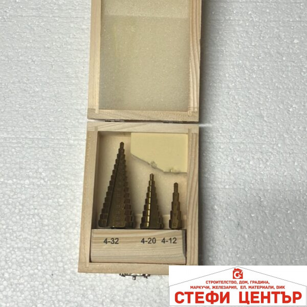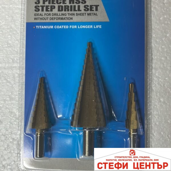 КОНУСНИ СТЪПАЛОВИДНИ СВРЕДЛА 3 БРОЯ КОМПЛЕКТ от 4мм – до 32мм.