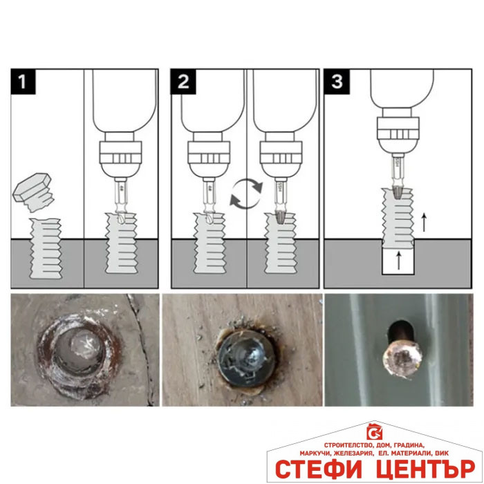 Екстрактори за отстраняване повредени болтове/винтове/пирони.