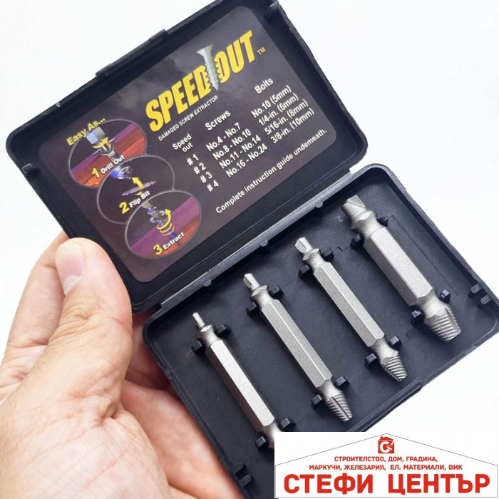Комплект екстрактови SPEED OUT за развиване и вадене на скъсани или разядени болтове.