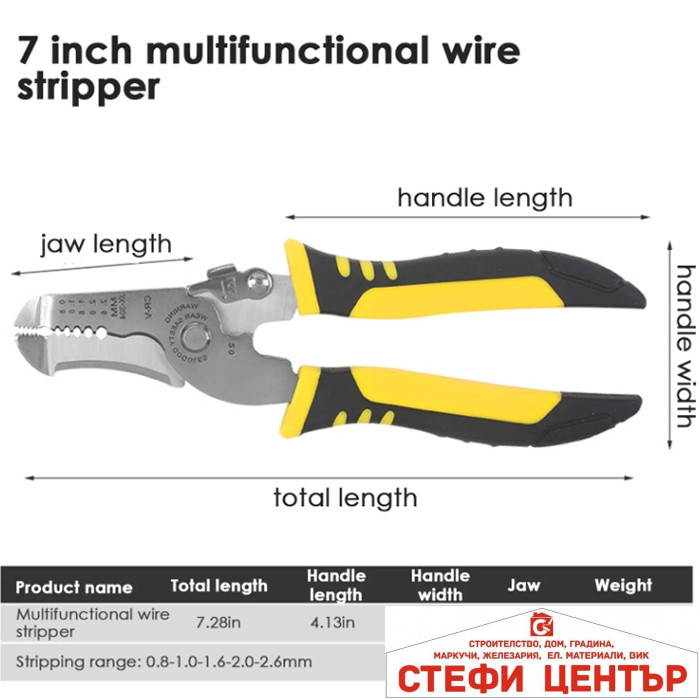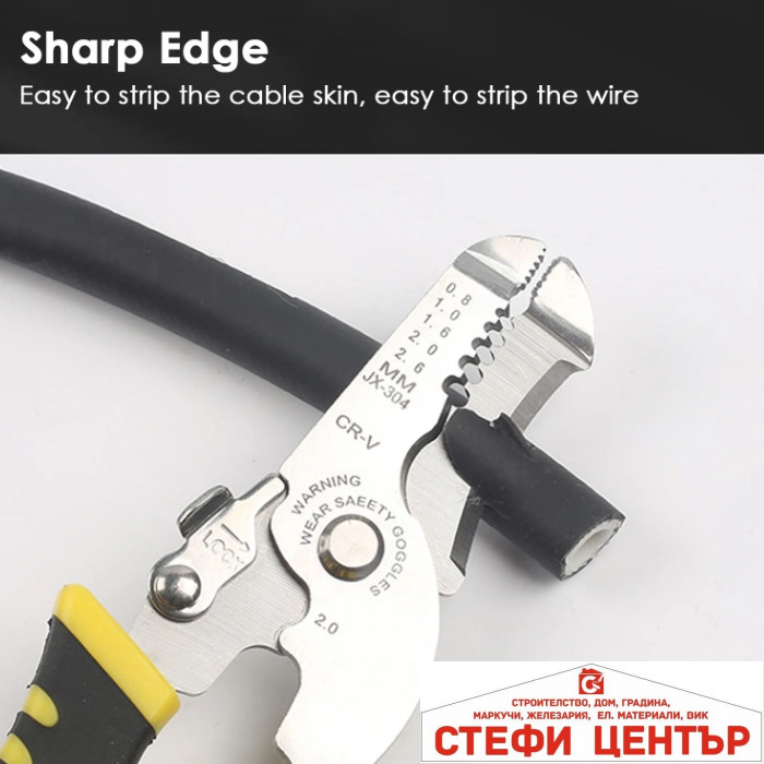 Специализиран клещи за зачистване и заголване на кабели и проводници с различно сечение.