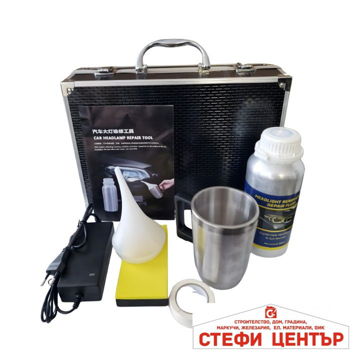 Професионален комплект за възстановяване на прозрачността и блясъка на автомобилни фарове. Подходящ за сервизи, детайлинг студиа и домашна употреба. Използва се за премахване на пожълтяване, надрасквания и мътност от поликарбонатни фарове, като възстановява първоначалната им яснота и видимост.