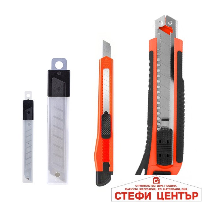 Практичен и универсален комплект макетни ножове, подходящ за ежедневна употреба в дома, офиса, училище или работилницата. Състои се от голям и малък макетен нож, както и резервни остриета за всеки от тях, осигуряващи продължителна и безопасна работа.