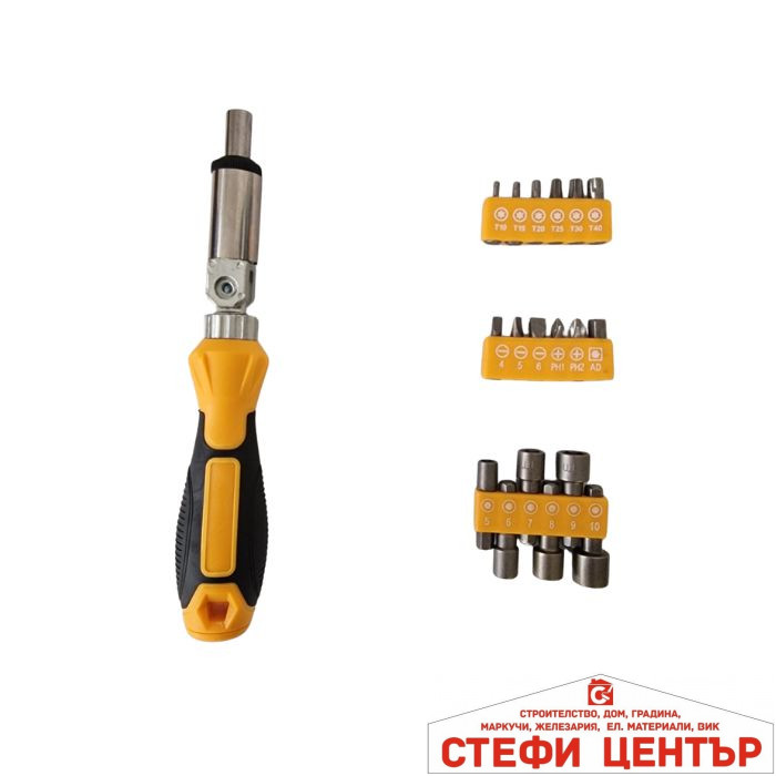 Отвертка с тресчотка PA1292 + накрайници – 19 бр. / к-т