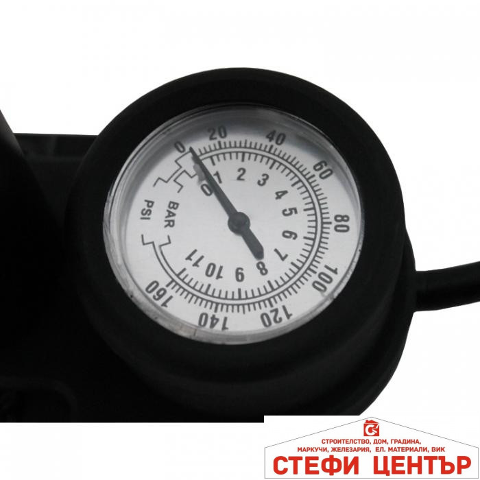 Манометъра е от 0 до 11 BAR или 0 до 160 PSI.