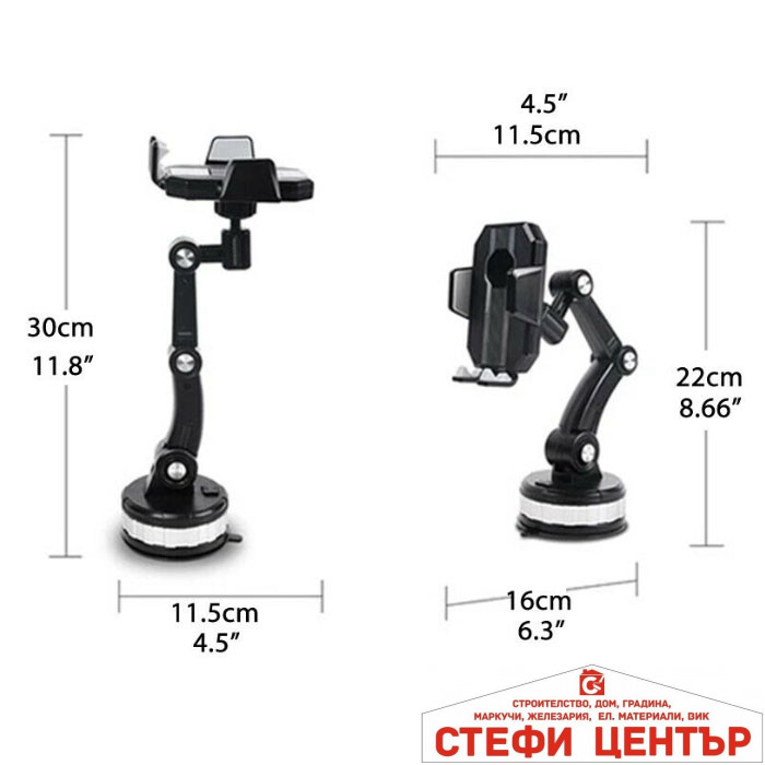 Поставката може да бъде закрепена както върху стъкло, така и върху гладки повърхности като таблото на автомобил, бюро и т.н.