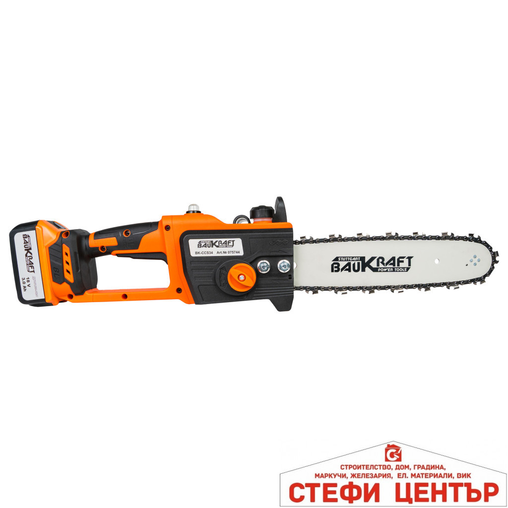 Безчетковият акумулаторен верижен трион BAUKRAFT BK-CCS34 е идеалното решение за бързо и ефективно рязане на малки дървени трупи и основни клони. Безчетковият мотор е по-бърз, по-мощен и 10 пъти по-издръжлив от сравним четков мотор