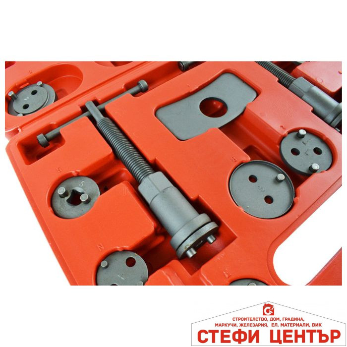 Tози комплект служи като отличен помощник при работа върху спирачната система за лесно и бързо натискане и прибиране на спирачните бутала.