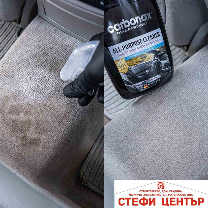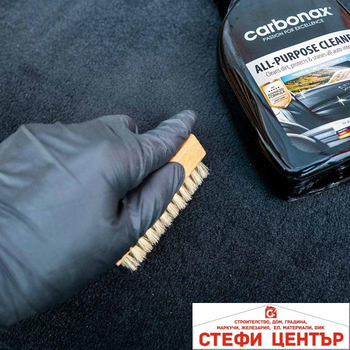 Спрей за почистване на автомобилен интериор Carbonax е задължителна придобивка за почистване на интериора на автомобила. Активните съставки във формулата премахват над 99% от замърсяванията (прах, мръсни петна, отпечатъци от пръсти и др.) и защитават детайлите в интериора от въздействието на UV-лъчите. Създава антистатичен слой, който предотвратява появата на прах в бъдеще. Не замазва, без лепкащ ефект. Оставя естествен блясък и дълготраен приятен аромат в цялото купе! Подходящ за пластмасови детайли, PVC, винил, гума и кожа. Без оцветители и силикони!