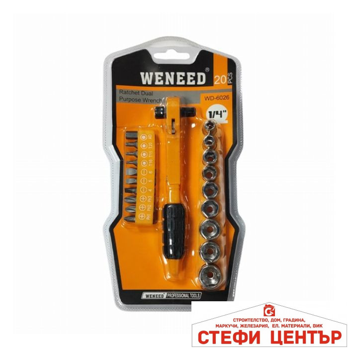 Целият комплект е със стандартен захват 1/4 инча, което го прави удобен за работа в тесни пространства и за по-фини задачи в дома, автомобила или за хоби проекти. – 20 броя