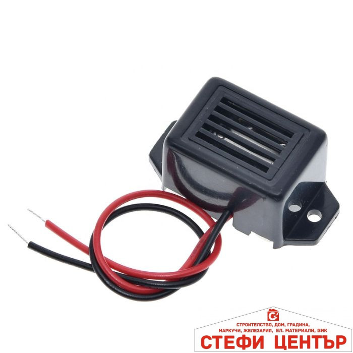 Идеално за използване в алармени системи, охранителни устройства, електронни проекти, както и за известяване при различни автоматизации. Работи на 6V и издава силен и ясен звуков сигнал при подаване на напрежение. Снабден е с два кабела (червен – положителен, черен – отрицателен) за лесно свързване и монтаж.