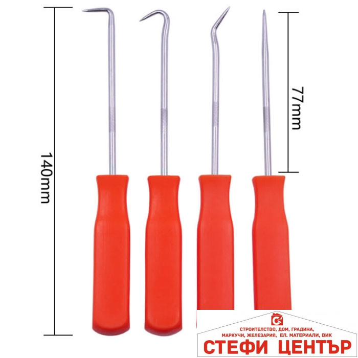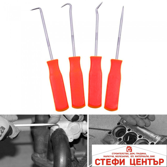 Включва: Шило и различни форми куки за достигане и отстраняване на трудно достъпни уплътнения