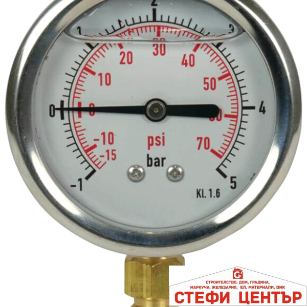Радиален манометър, глицеринов, 1.6% клас на точност